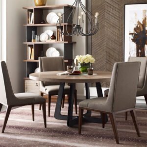 Soft rounded steel forms the base of the Concentric Round Dining Table. The top with beautiful dyed ambrosia maple veneers and a marble stone insert work well in broad range of dining spaces. Walnut, Ambrosia Maple, Rolled Steel(Metal Finish)