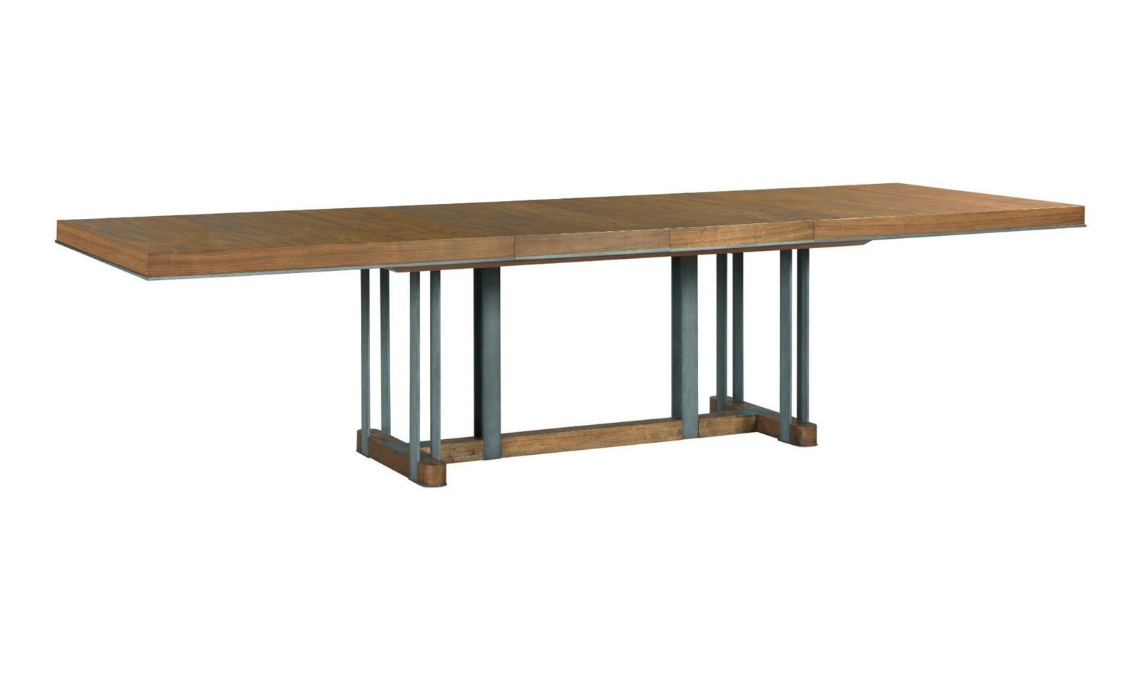 Curator dining table is the perfect combination of figured walnut veneers on top and metal for any dining room. Table goes from 84″ to 124″ with two 20″ leaves so you can adjust to fit any lifestyle. Walnut, Ambrosia Maple, Rolled Steel(Metal Finish)