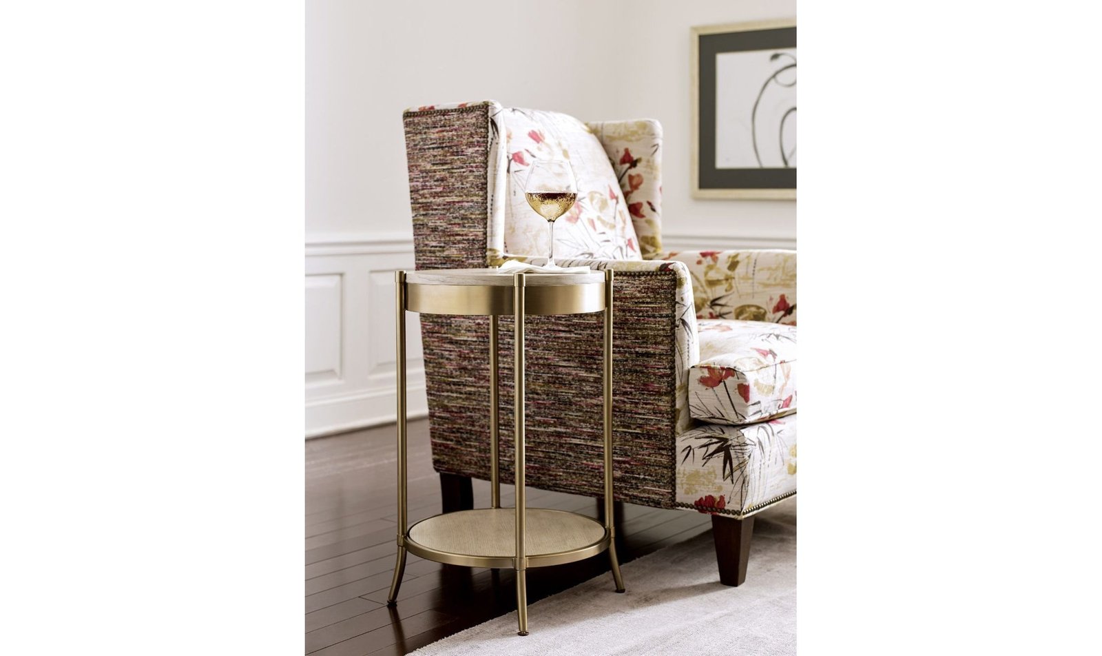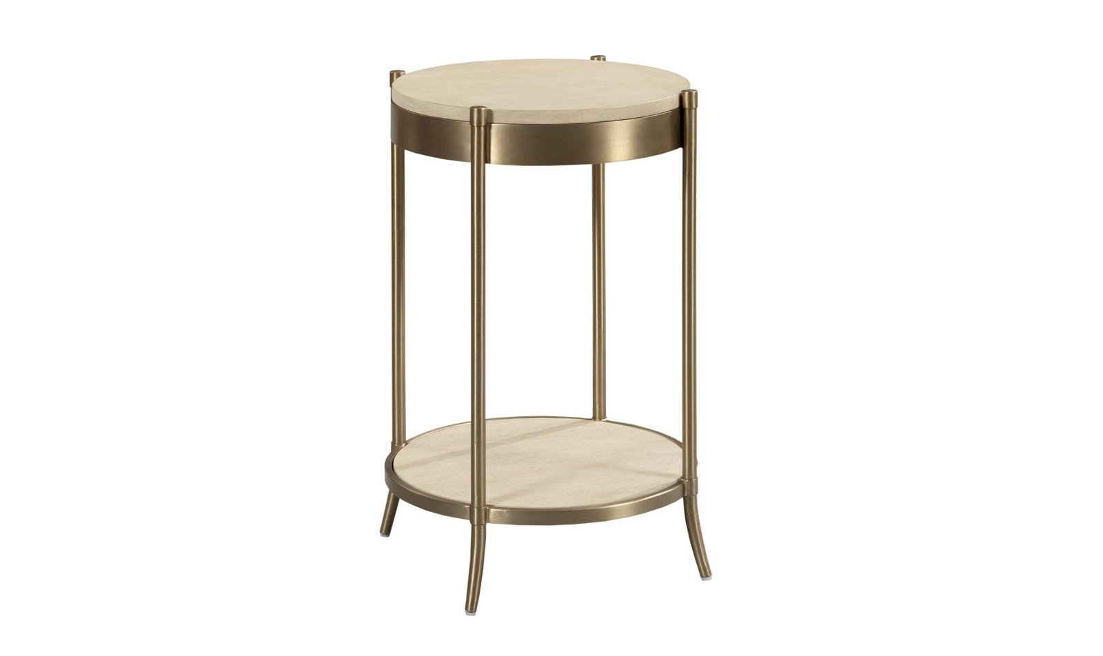 The Lenox Martini table includes one fixed shelf. ALABASTER(OAK VENEER); RICH CLEAR LAQUER(AMARA EBONY VENEER); BRASSY CHAMPAGNE(METAL)