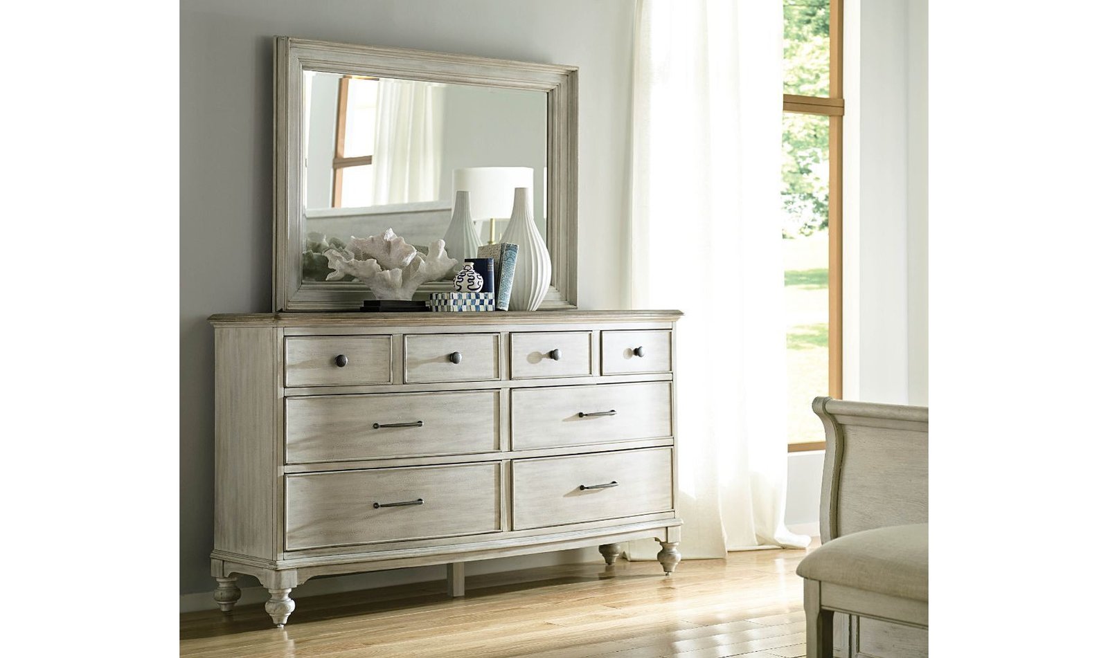 Sunwashed picture framed mirror with beveled glass is scaled for use in any room in the home. Sun Washed, Driftwood, Denim