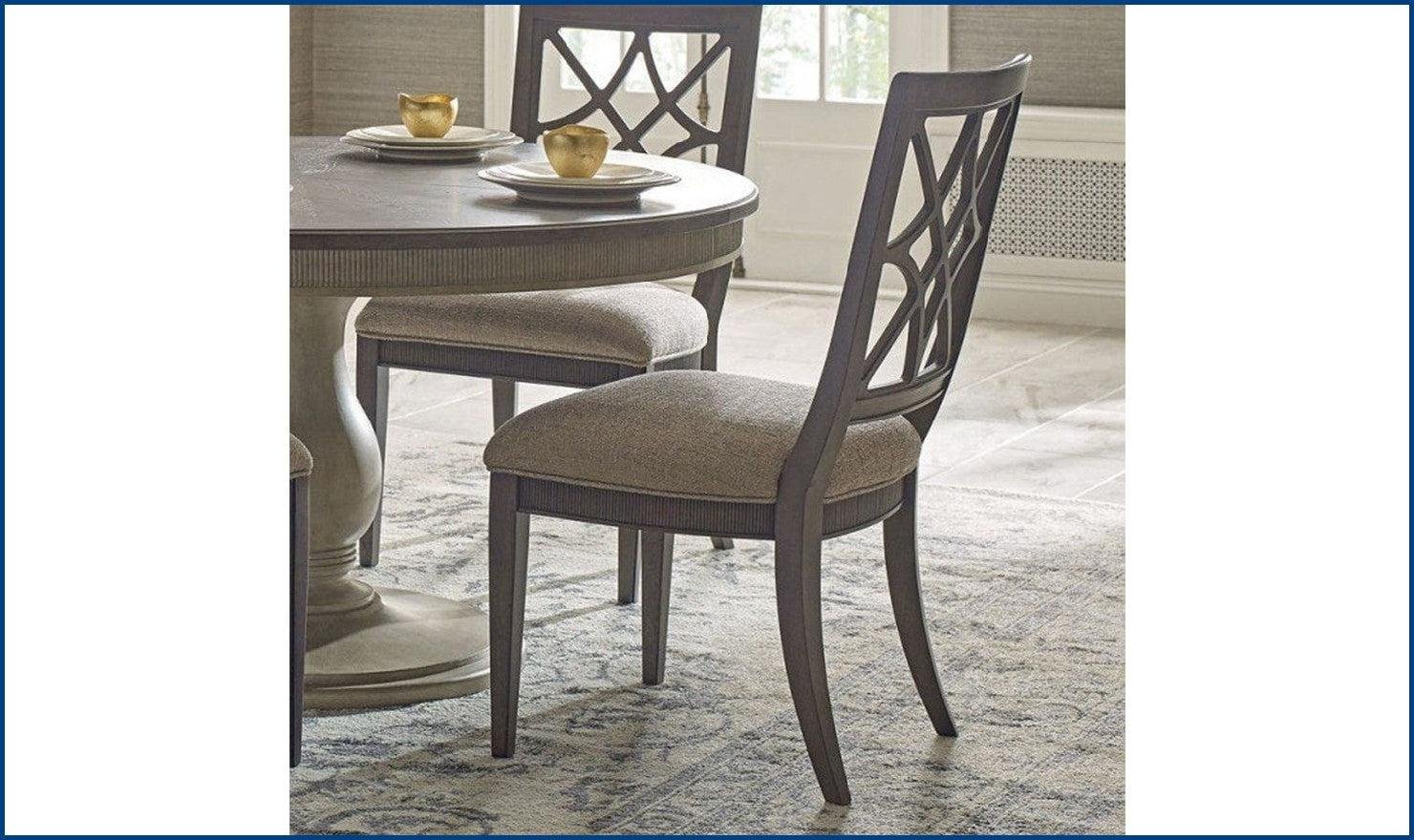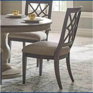 [Description]Intricately carved back side chair is beautiful with the reeded chair rail and tapered legs that will complete any setting.