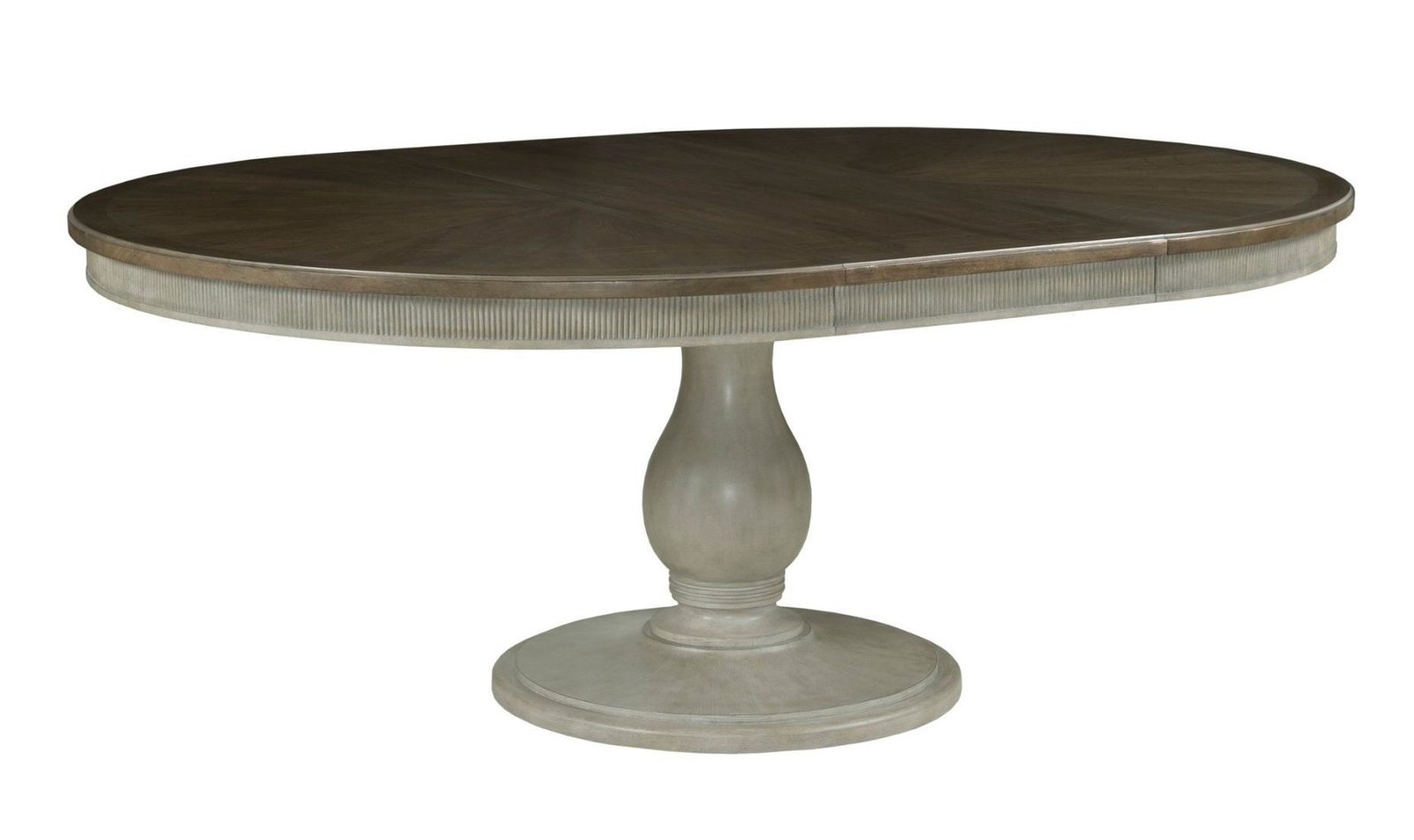 Octavia round dining table is great for smaller areas but will extend from 56″ to 76″ with one 20″ leaf. The versaille finish base and contrasting geometric marquetry veneer pattern in the mocha elm finish top make this a perfect table for any dining room. Versaille